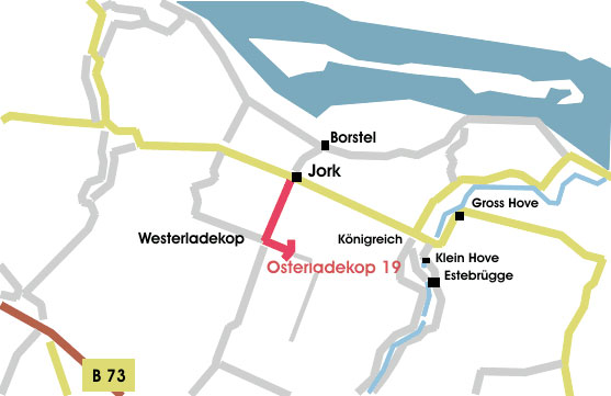 Von der A 7 kommend (Ausfahrt Heimfeld) fahren Sie Richtung Stade/Cuxhafen auf die B 73.